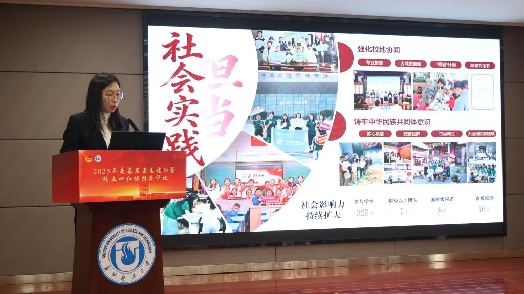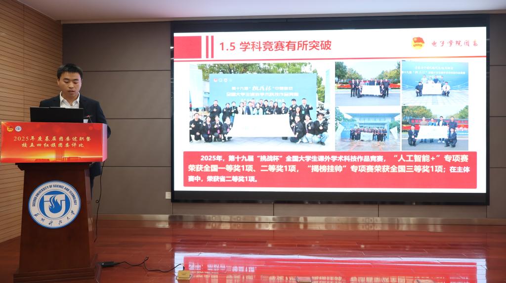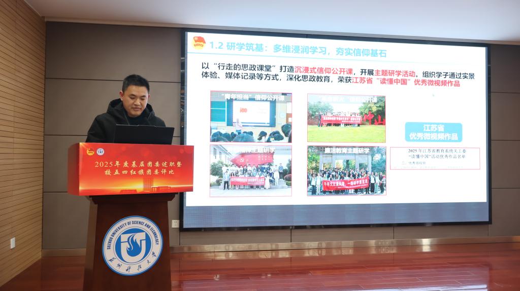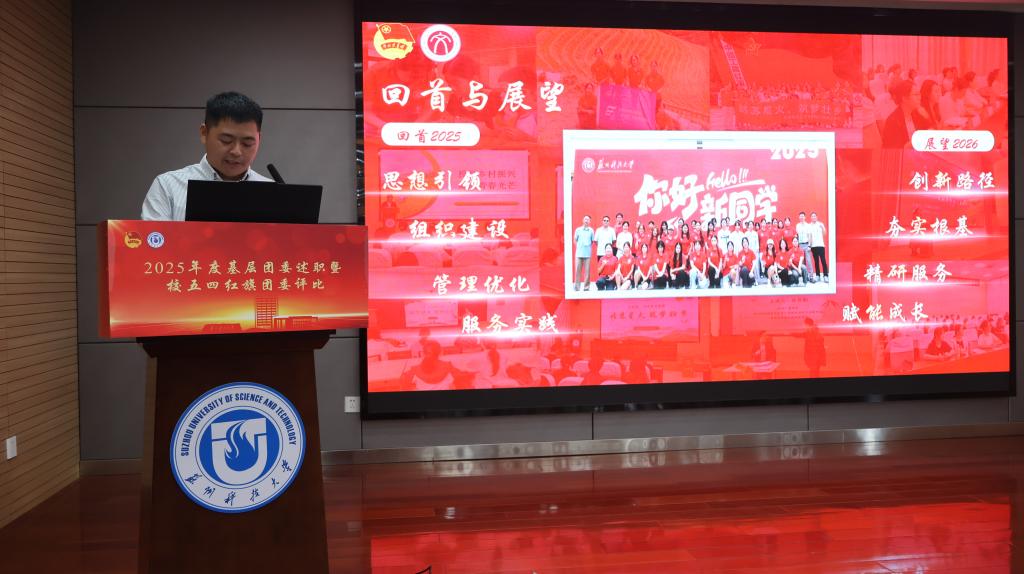 会上,20个学院团委书记根据《2025年度苏州科技大学共青团学院团委综合考评方案》要求依次进行现场述职。各单位围绕思想引领、组织建设、成长服务和校园文化等述职评议考核重点内容,结合所在学院共青团工作特色亮点以及典型做法进行汇报展示,总结成绩、查摆不足,提出优化改进措施。经评定,建筑与城市规划学院团委等5家学院团委获评“2025年度苏州科技大学五四红旗团委”。