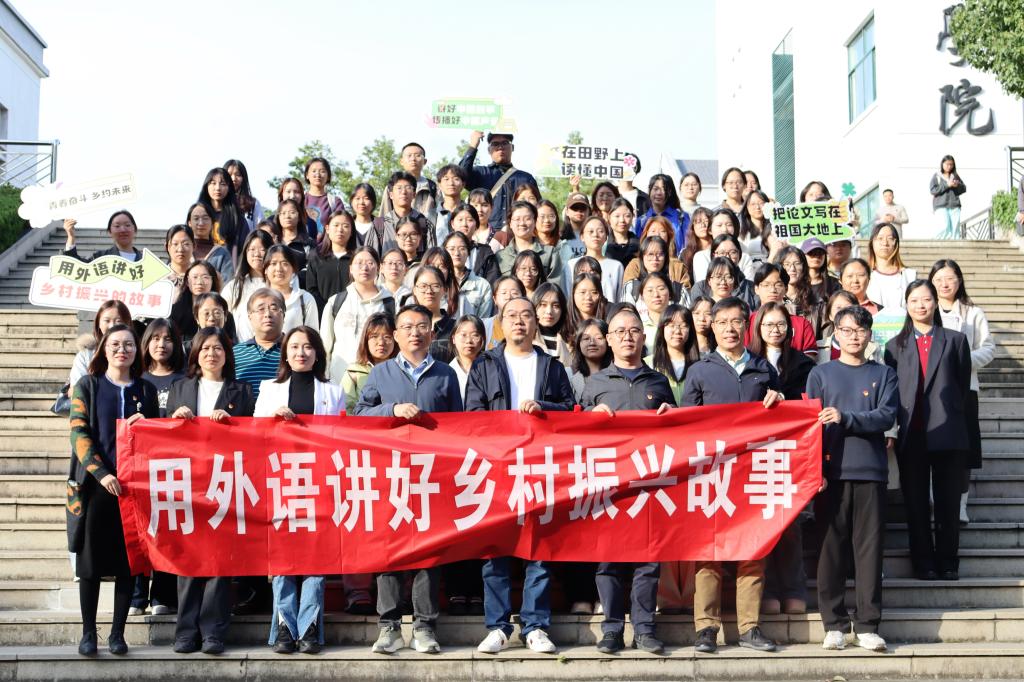 该课程由校团委与外国语学院联合打造,紧扣学科特色,创新构建“理论+实践”“课堂+田野”沉浸式教学模式。课程将课堂延伸至乡村一线,围绕非遗传承、智慧农业、乡村治理等主题开展深度调研,形成多语种传播成果,以青年视角生动讲述中国乡村振兴故事。课程特邀江苏省文化优青人才周春毅、乡土人才“三带”新秀徐峻育等青年典型,分享以核雕非遗助农、以智慧农业兴农的奋斗经历,引导外语学子将专业本领转化为服务乡村的实际行动,在田间地头践行“请党放心、强国有我”的青春誓言。