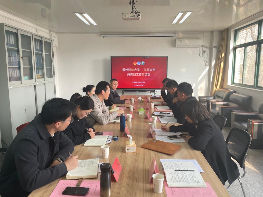 校团委与江苏大学团委围绕“挑战杯”竞赛的组织动员、项目培育、机制保障等内容进行了深入探讨。江苏大学团委分享了其在赛事组织、重点项目挖掘及学生创新能力培养方面的经验做法。双方还探讨了如何运用新媒体更好地引领青年、服务青年。