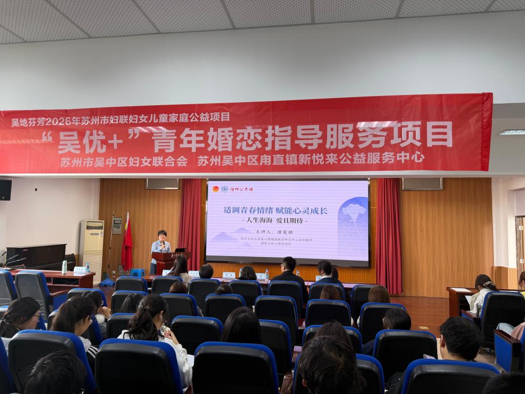 为引导大学生形成正确婚恋观,提升情感沟通能力,减少情绪内耗,营造理性、包容、温暖的校园文化氛围。4月15日,“适调青春情绪,赋能心灵成长”信仰公开课在我校教育学院606报告厅举行。本次活动由校团委、苏州市吴中区妇女联合会主办,苏州市吴中区新悦来公益服务中心与教育学院承办。教育学院党委副书记徐瑾、吴中区妇联副主席陆燕、校团委副书记王宝、吴中区妇女干部学校副校长卞文君及教育学院师生代表出席活动。讲座特邀苏州大学心理健康教育研究中心专职教师屠雯静主讲。