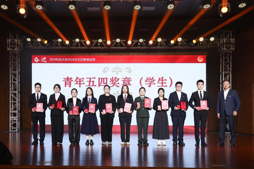 2025年度,我校共评选出99个先进团组织和646名优秀个人。团课现场,学校领导和嘉宾为获得“五四红旗团委”“青年五四奖章”等荣誉的先进集体和个人颁奖,激励广大青年师生对标先进,奋勇争先,实干笃行。我校与苏州科技馆共同为“科创实践教育基地”揭牌,标志着校馆合作迈入新阶段,为青年发展拓展了更广阔平台。